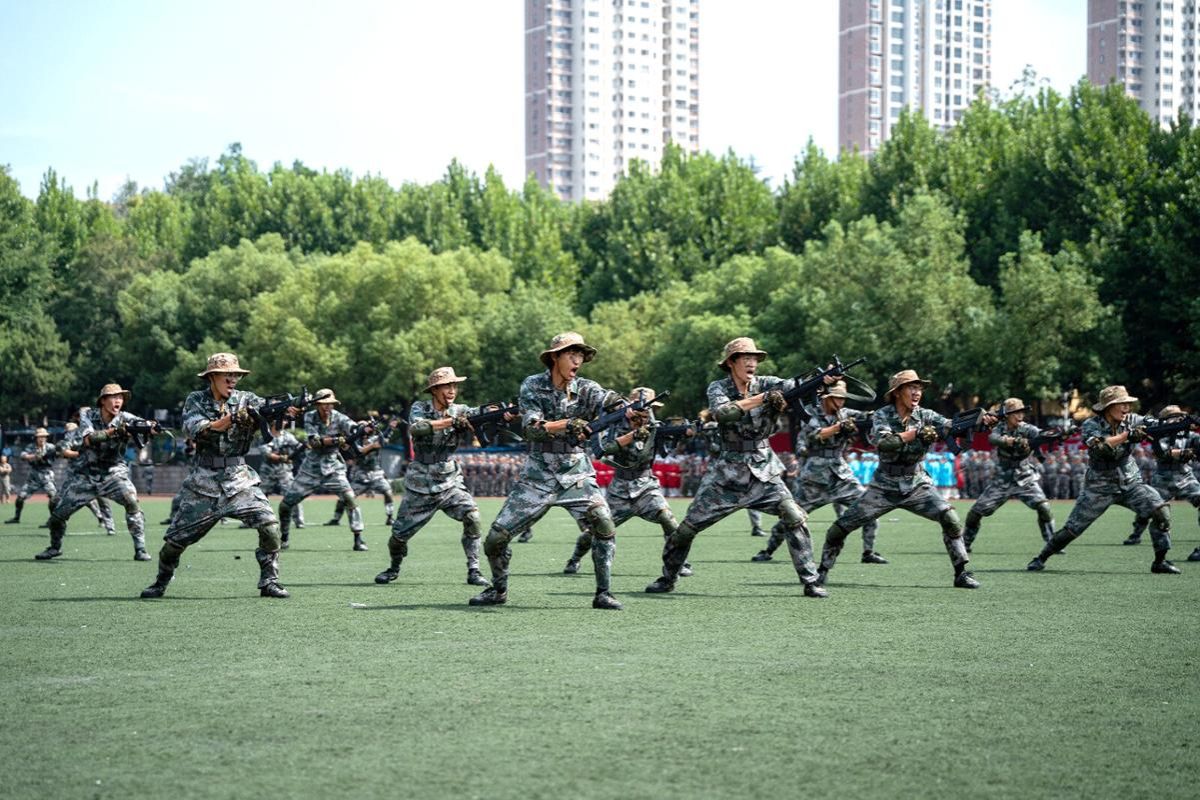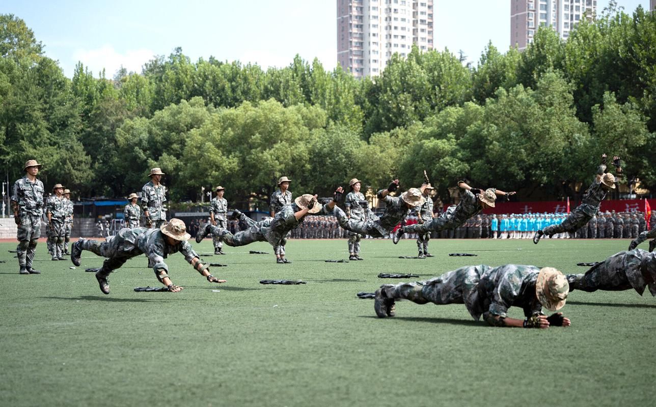 军事格斗组合、“完美(中国)利刃”战斗突击方队等军训特色课目进行了汇报展示。