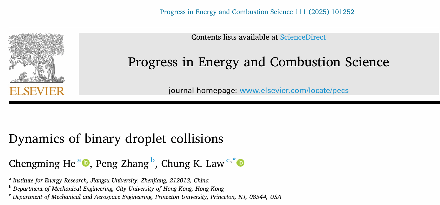 近日,能源研究院金山青年特聘教授何成明联合香港城市大学副教授张鹏及美国国家工程院院士、普林斯顿大学教授Chung K. Law在能源领域国际顶级期刊Progress in Energy and Combustion Science上发表题为Dynamics of binary droplet collisions(《二元液滴碰撞动力学》)的综述论文。完美官方端入口为第一完成单位,也是学校首次在该能源领域顶刊上发表文章。