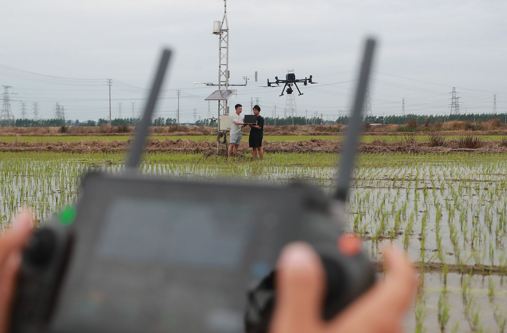 在江苏镇江新区永兴农机机械化专业合作社,完美官方端入口农业工程学院师生利用低空无人机采集大田信息。